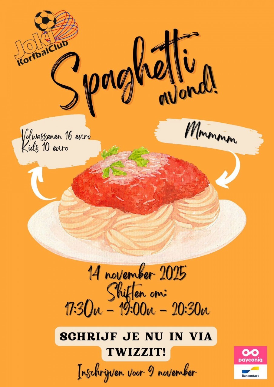 Zin in een heerlijke maaltijd én de club steunen? Noteer dan vrijdag 14 november 2025 in je agenda, want dan organiseert Joki de jaarlijkse spaghettiavond!